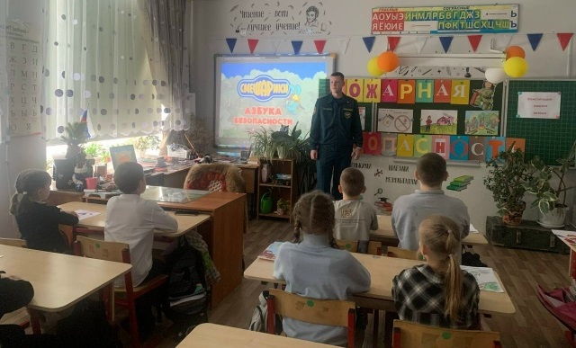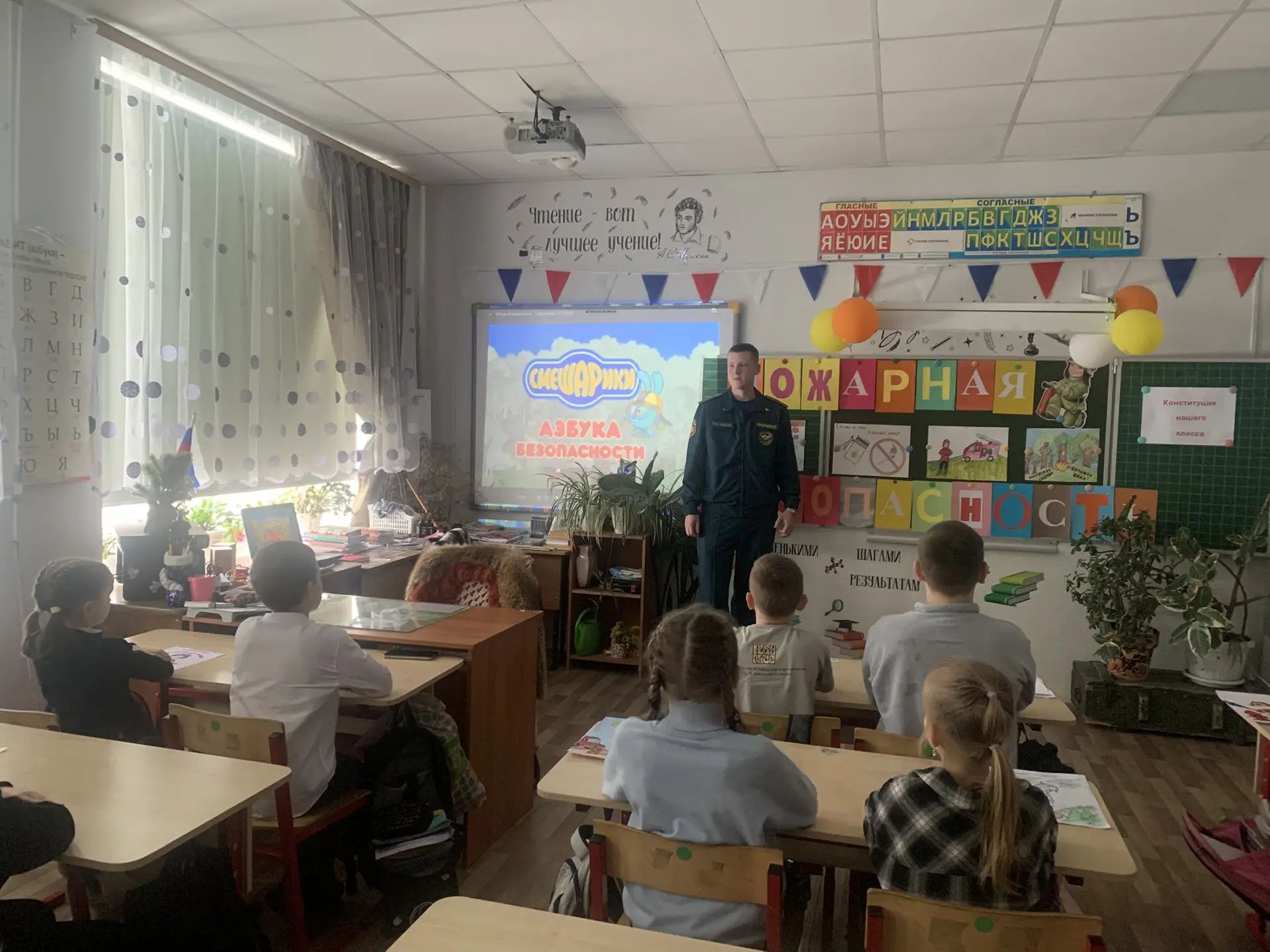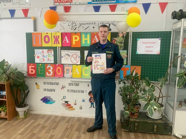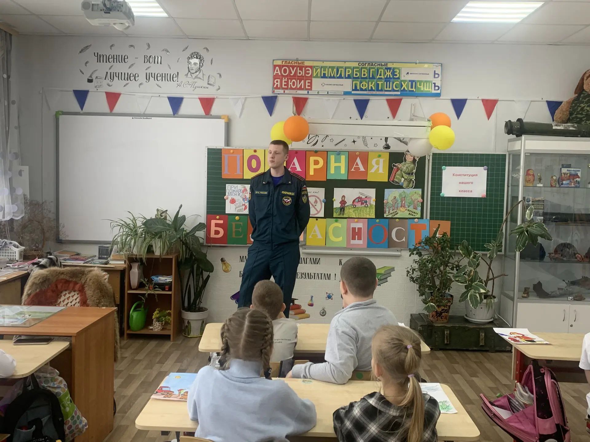 В теплинскую первую школу заглянул особенный гость – человек в погонах, знающий всё об опасности огня.