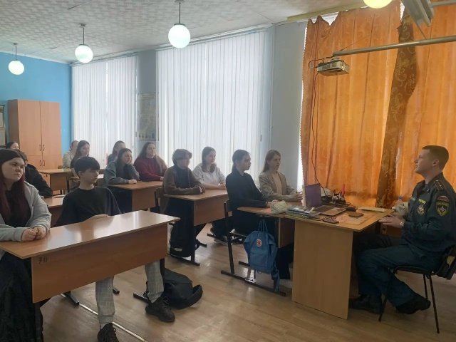 Старшеклассникам инспектор рассказал о возможностях поступления в высшие учебные заведения МЧС России, а также подчеркнул преимущества и значимость профессии спасателя.