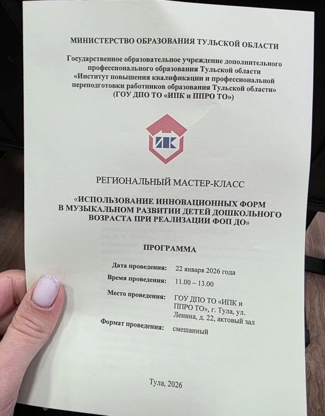 Музыкальные руководители и педагогические работники дошкольных образовательных организаций г. Тулы и Тульской области имели возможность обменяться опытом работы с детьми дошкольного возраста по музыкальному образованию в рамках реализации ФОП ДО.