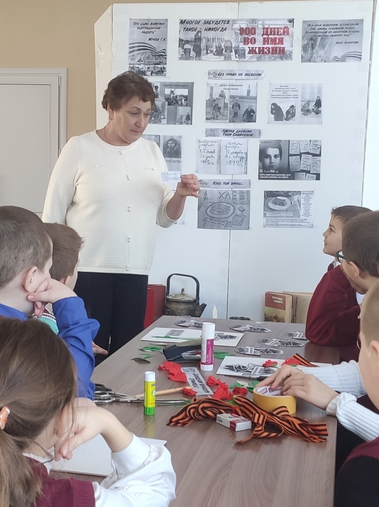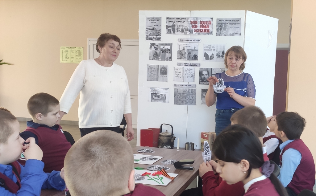 Ребята узнали о том, как маленькие ленинградцы в блокадном городе сражались с голодом, холодом, смертью, как с первых дней войны старались помочь взрослым: вставали за станки вместо ушедших на фронт родителей, строили оборонительные укрепления, ухаживали за ранеными, собирали металлолом, необходимый для изготовления патронов и снарядов. Также ребята услышали историю ленинградской школьницы Тани Савичевой, которая во время блокады вела дневник, содержащий девять страшных строк: каждая строка посвящена смерти одного из близких.