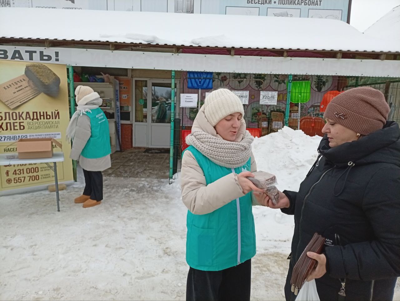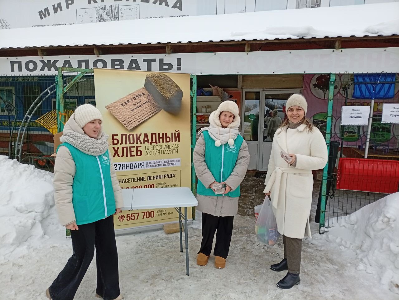 О событиях того страшного времени сегодняшним современникам напомнили волонтеры Победы. На улицах Теплого они рассказывали прохожим о блокаде Ленинграда, вручали листовки с историческими фактами и раздавали те самые 125 грамм хлеба – минимальную долю буханки, которой хватало ленинградцам разве только для того, чтобы не умереть.