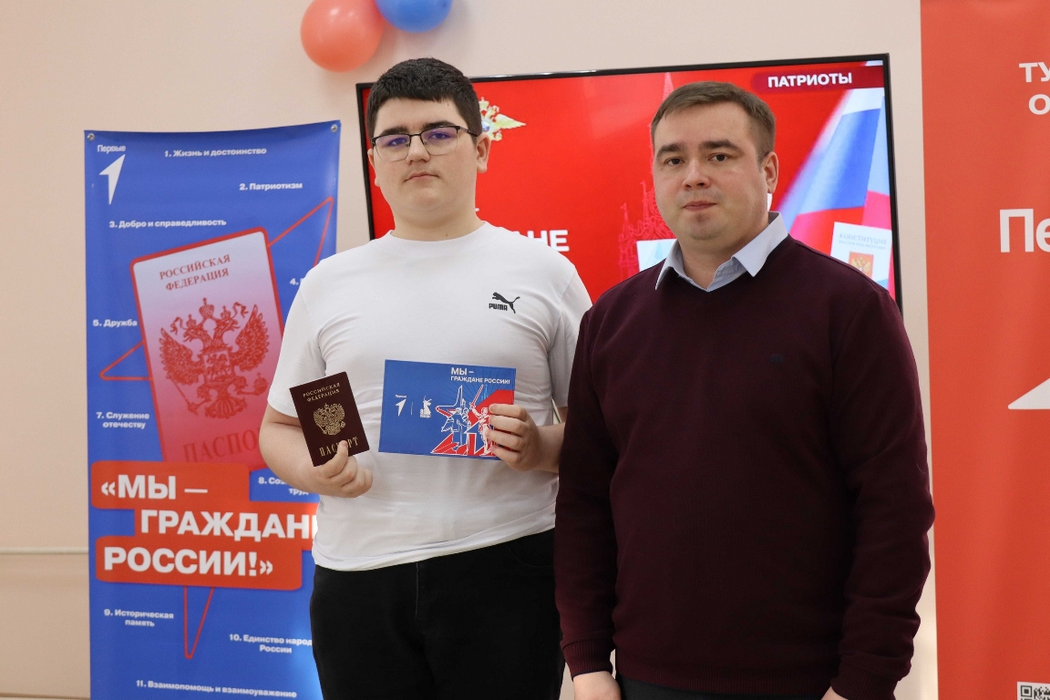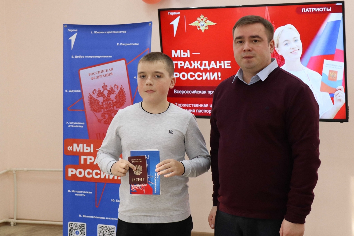 Юношей и девушек поздравил глава районной администрации Роман Попов и передал им их главный документ: