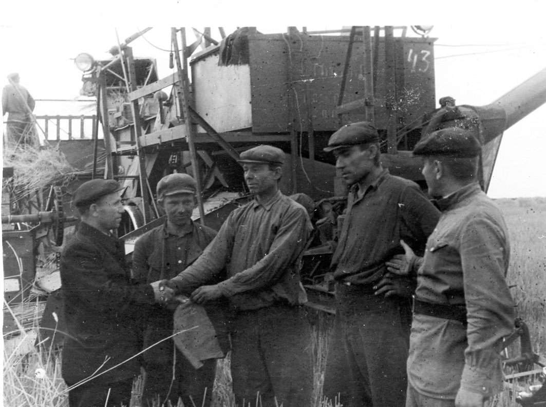 Перед нами снимок, запечатлевший горячую пору уборки урожая на нарышкинских полях.