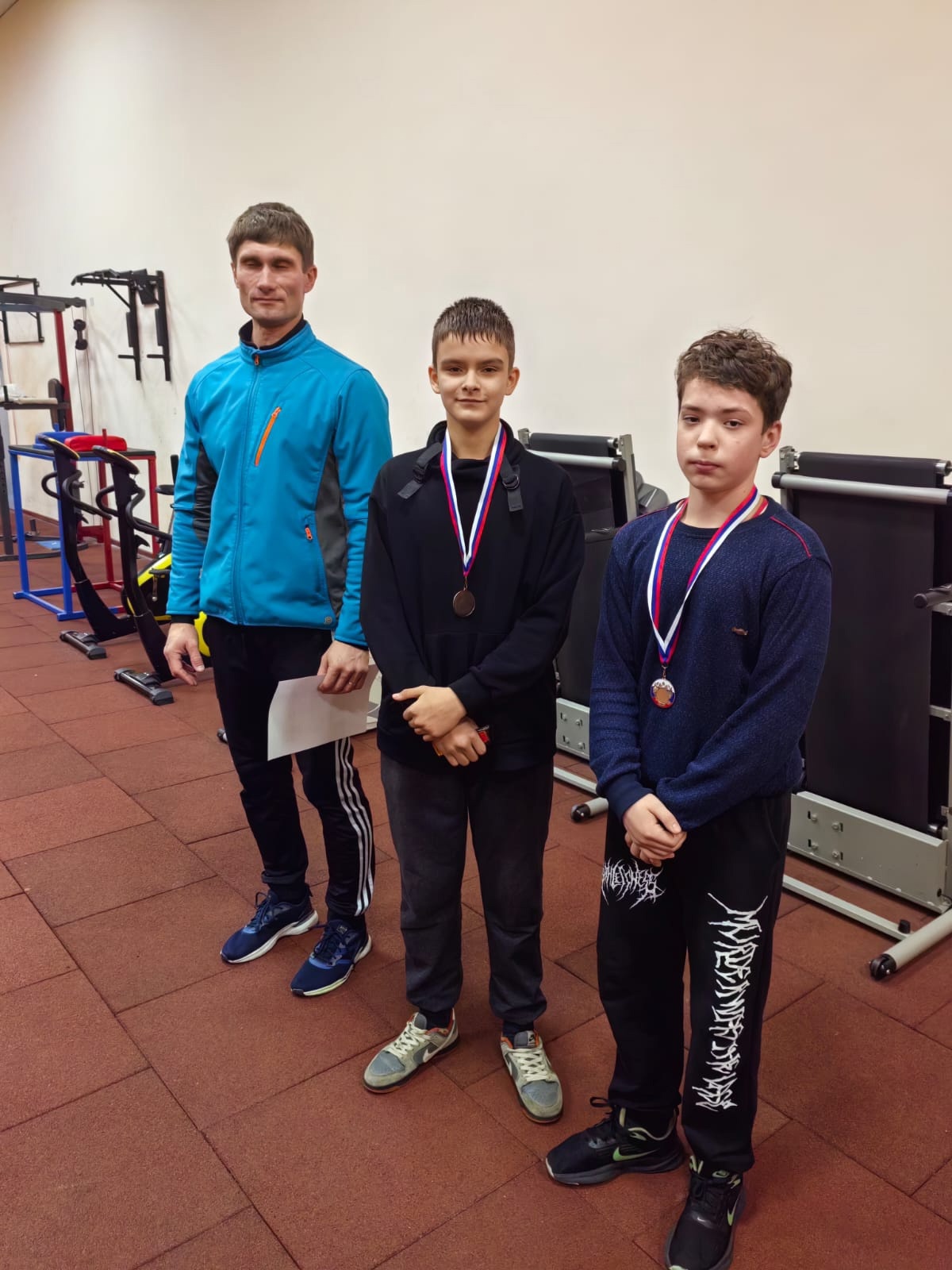 В возрастной группе 12-13 лет участники соревновались в подтягивании в висе на высокой перекладине и отжиманиях в упоре лёжа. В результате места распределились следующим образом: 3 место разделили Авдонин Сергей и Кочетов Илья, второе место занял Сурин Иван и победителем стал Шагоцкий Артём.
