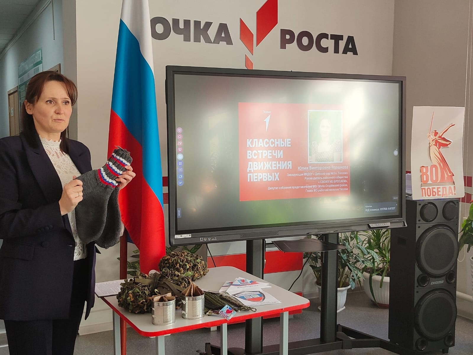 Гостьей стала Юлия Викторовна Горшкова, которая поделилась вдохновляющими историями о волонтерах движения «Своих не бросаем». Её рассказ погрузил всех присутствующих в атмосферу самоотверженности и доброты, ведь волонтеры ежедневно трудятся над организацией гуманитарной помощи для ребят на передовой линии специальной военной операции.