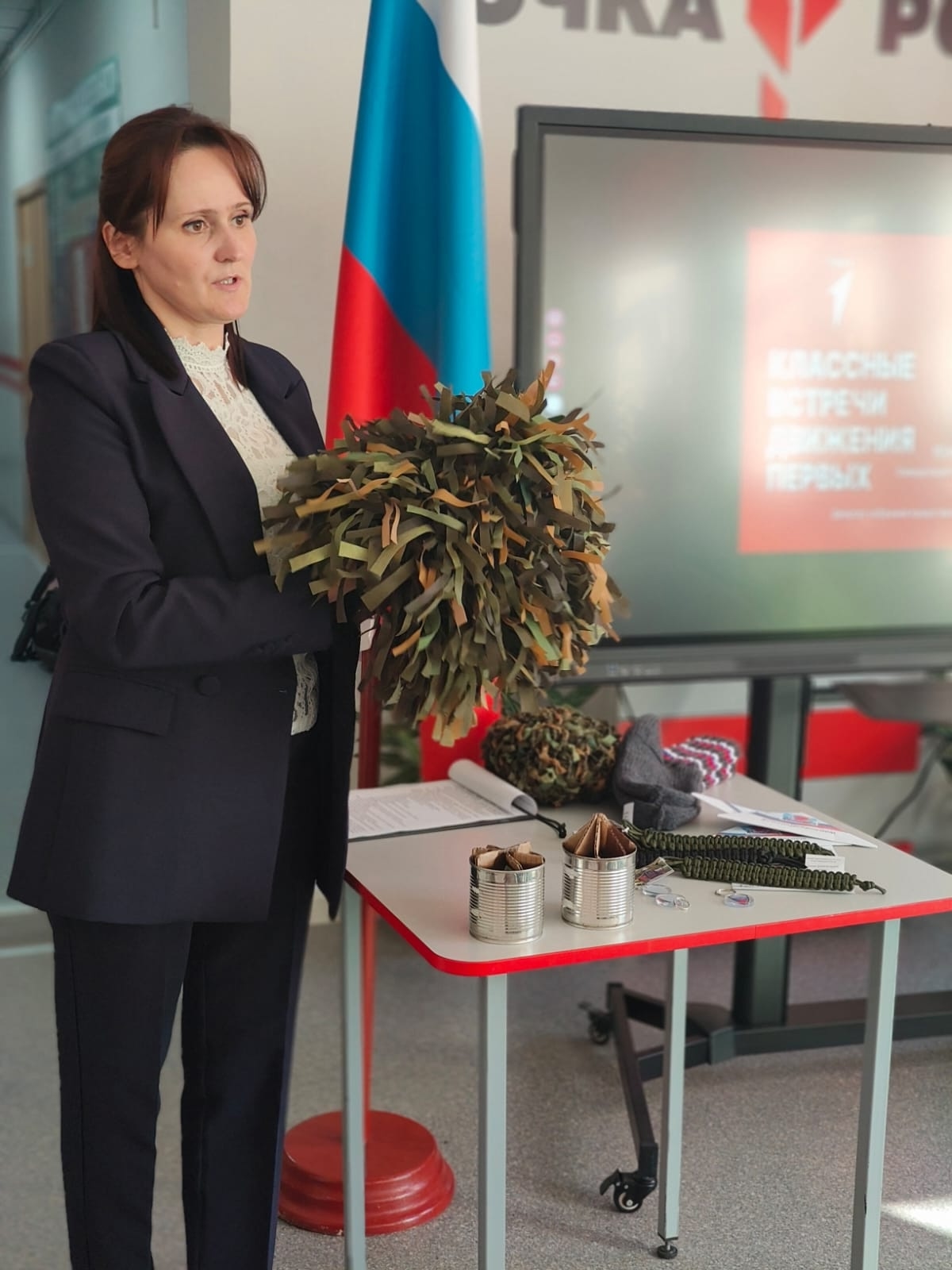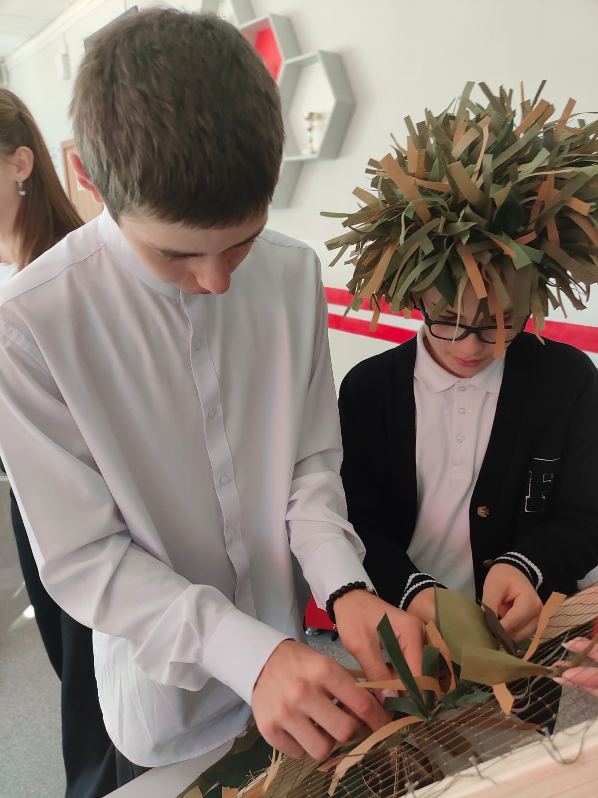 Завершением встречи стал мастер-класс по созданию маскировочных нашлемников для солдат. Этот опыт позволил школьникам почувствовать себя частью большого дела, осознавая важность своей поддержки защитников Родины.