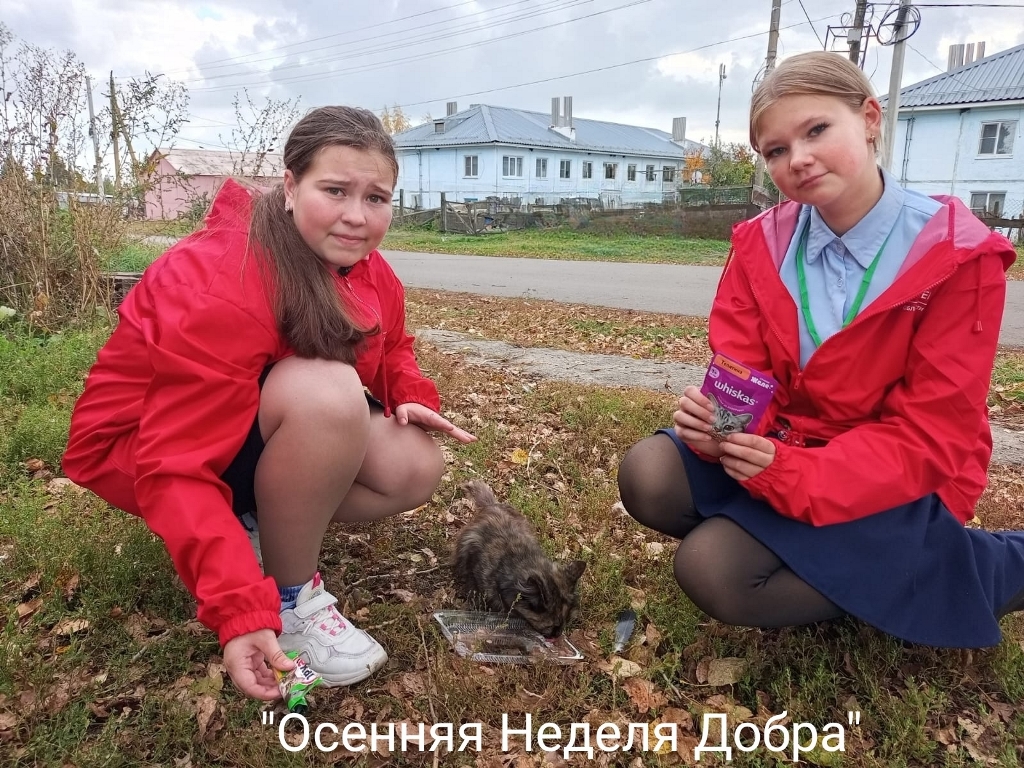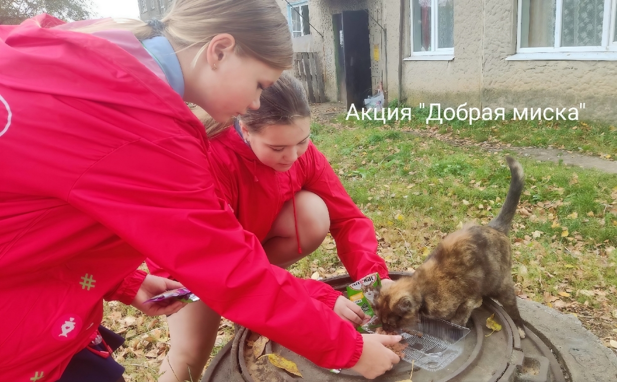 В рамках Осеннней недели добра волонтеры Алексеевской школы провели акцию «Миска добра».