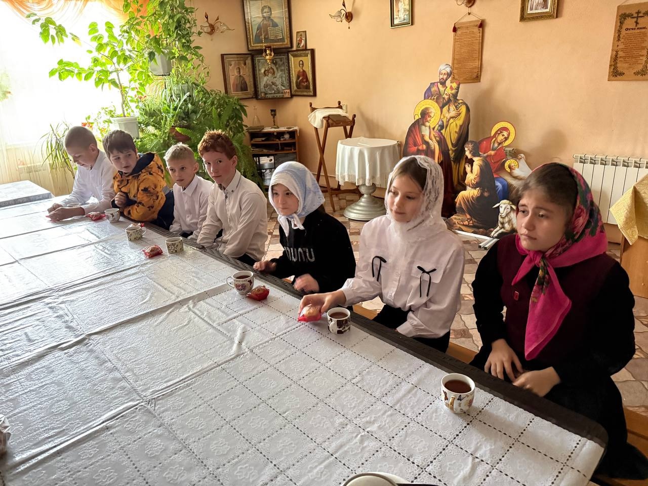 В стенах храма царила особая атмосфера. Дети с большим интересом слушали рассказ отца Иоанна о значении этого светлого праздника и его истории.