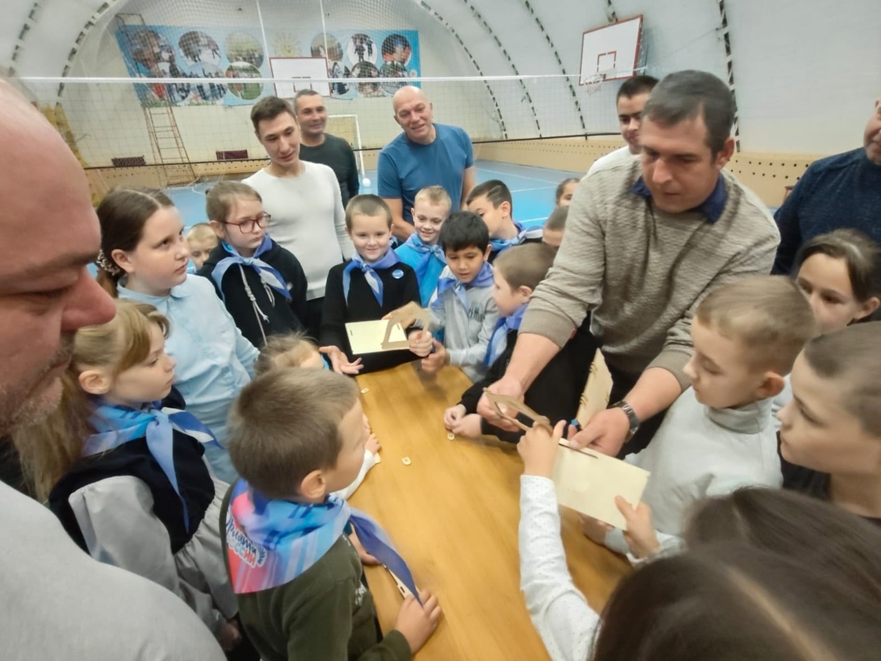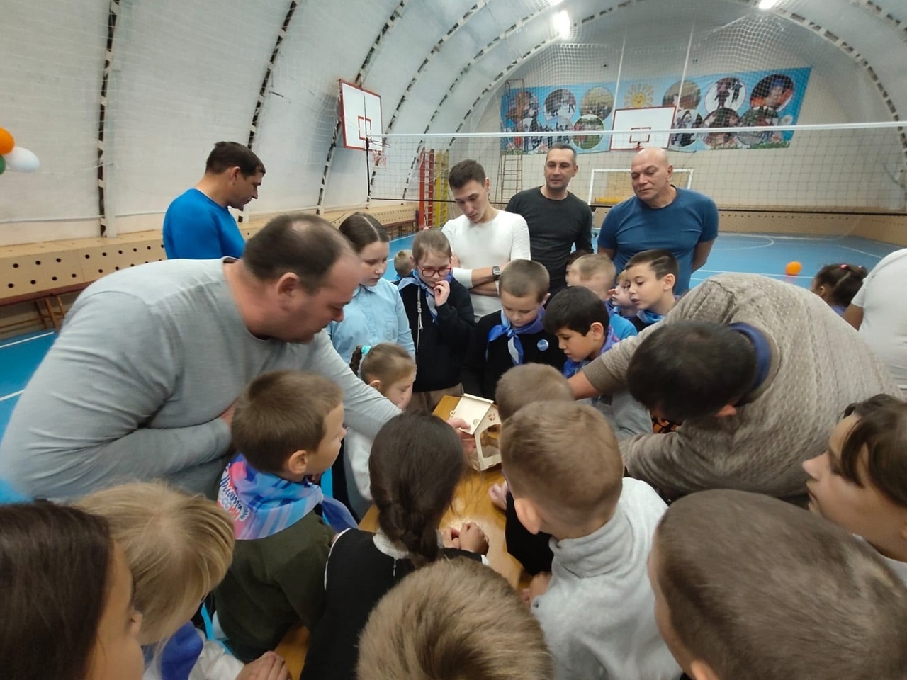 Папы вместе с детьми - сыновьями и дочками - прямо в спортивном зале школы смастерили своими руками деревянные кормушки для птиц. Праздник стал еще одним поводом, чтобы взрослые провели свое время вместе с детьми. Совместное провождение времени в школе дало ребятам еще один повод гордиться своими папами, с достоинством продолжать добрые дела своих семей.
