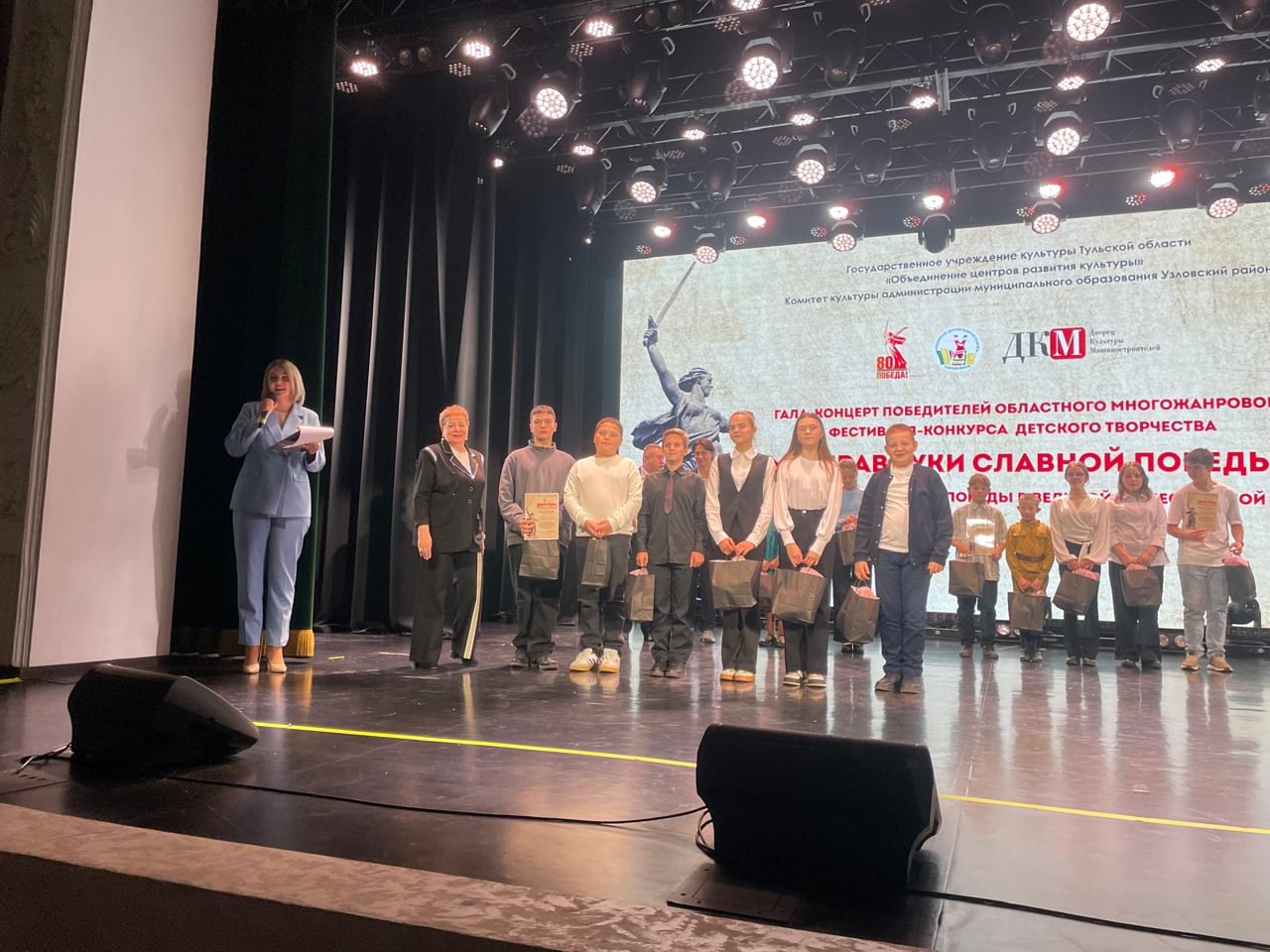 В Узловой во Дворце культуры машиностроителей состоялся гала-концерт победителей многожанрового фестиваля-конкурса «Мы правнуки славной Победы», посвященного 80-летию Победы в Великой Отечественной войне.