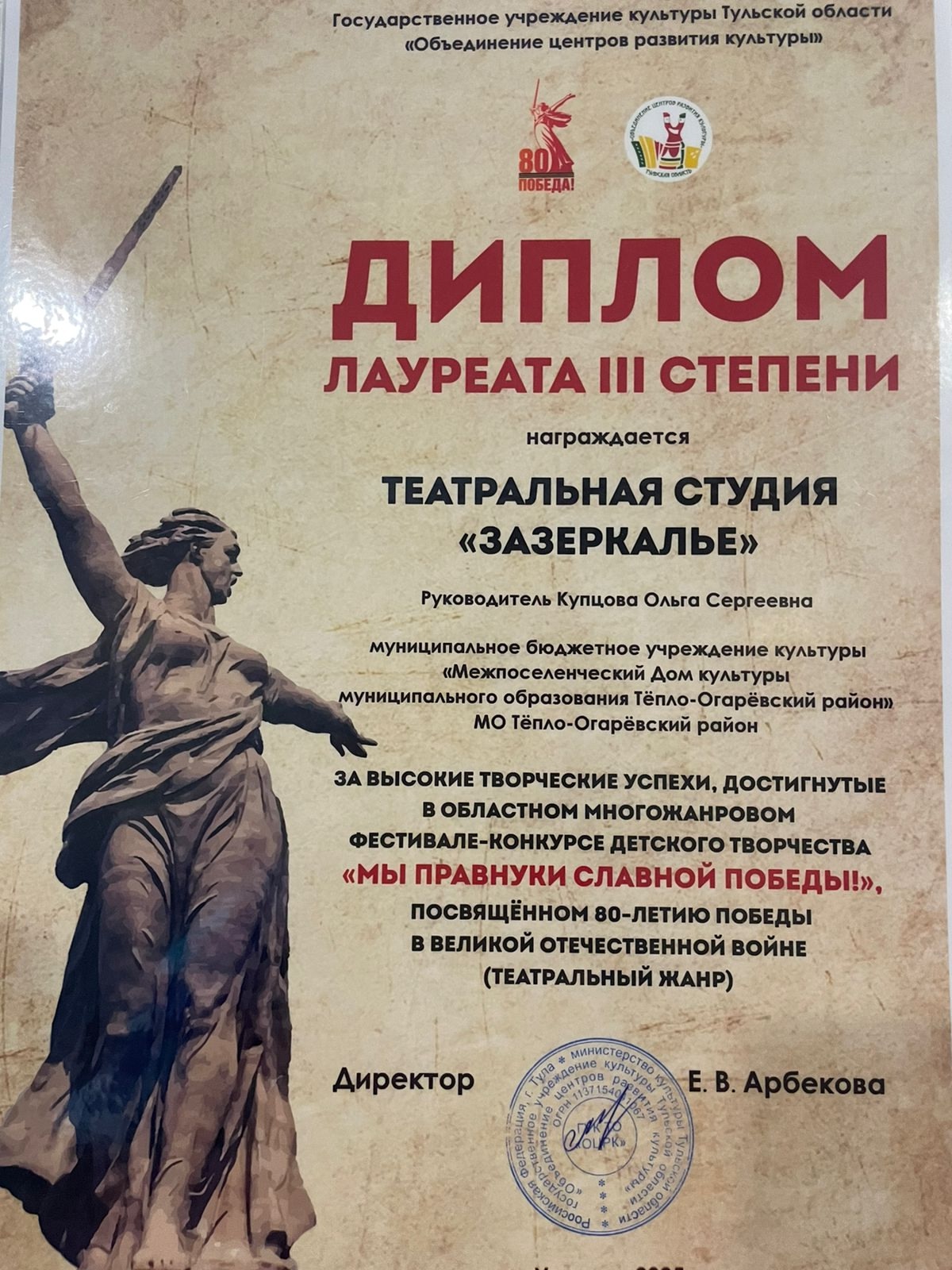 Участники театральной студии «Зазеркалье» районного дома культуры вошли в их число. В своем жанре коллектив был награжден дипломом лауреата III степени и подарками. Раскрывает таланты теплинских детей педагог Ольга Купцова.