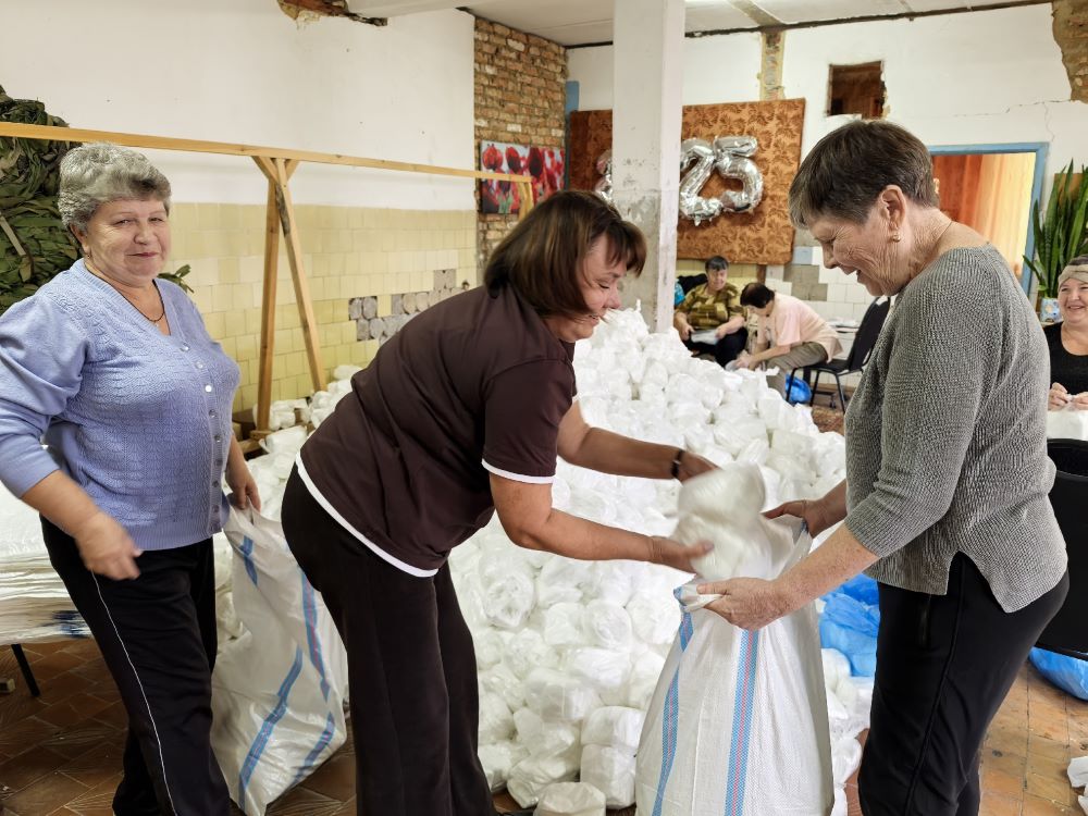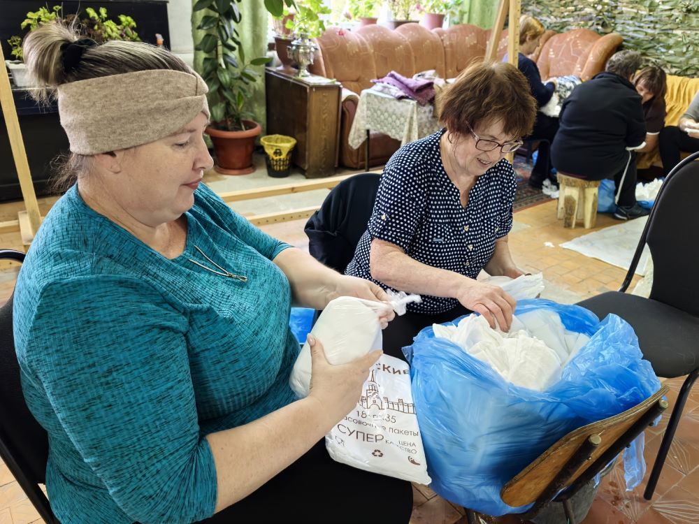 Рассредоточившись небольшими группами, односельчане стали раскладывать салфетки по маленьким пакетам, вырабатывая свою технику быстрого выполнения задачи. Так, две тонны салфеток за три дня были полностью расфасованы. Они уже на этой неделе отправятся на передовую, где помогут солдатам в быту.