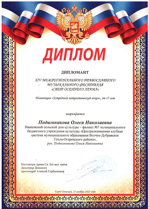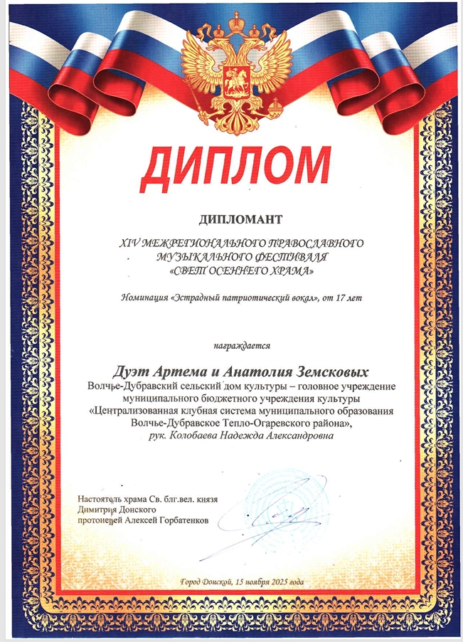 15 ноября в Донском состоялся гала-концерт лауреатов XIV межрегионального православного музыкального фестиваля «Свет осеннего храма». Он прошел под патронажем храма в честь Святого Благоверного Великого князя Димитрия Донского.