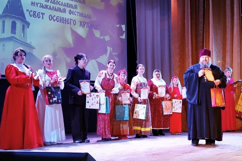 В финале гала-концерта настоятель храма Димитрия Донского отец Алексий вручил награды лауреатам фестиваля.
