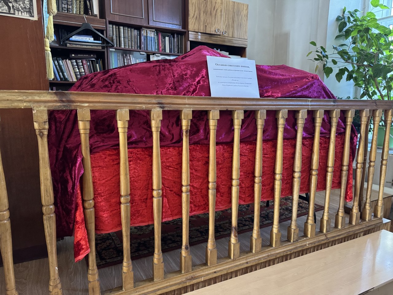 В санитарном захоронении были обнаружены останки тел 32 бойцов. Личность одного из них удалось установить благодаря солдатскому медальону.