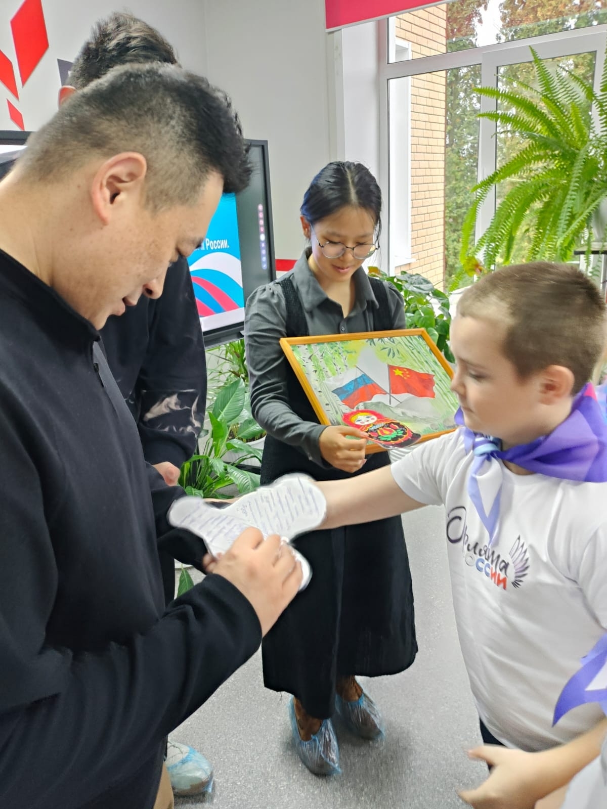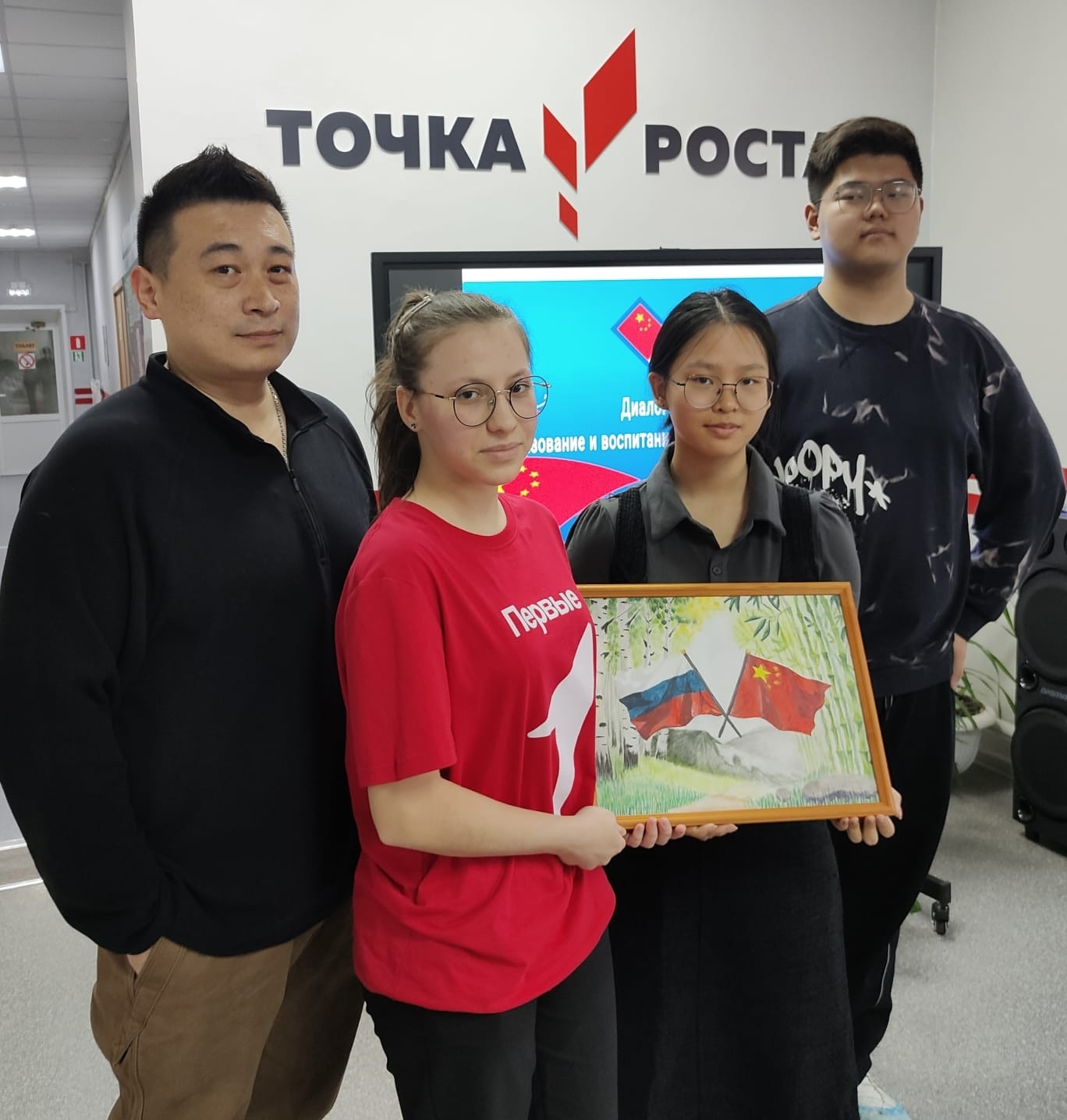 Особенным оказался подарок ученицы 11-го класса Патимат Гасановой, которая преподнесла китайским друзьям оригинальный рисунок, наполненный глубоким смыслом. Ее творческая работа символизирует крепкую дружбу и взаимопонимание между двумя великими странами - Россией и Китаем.