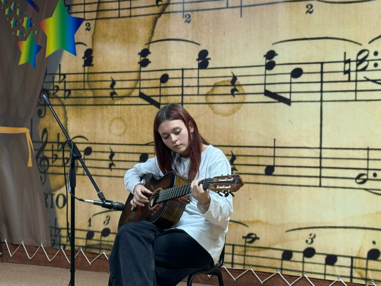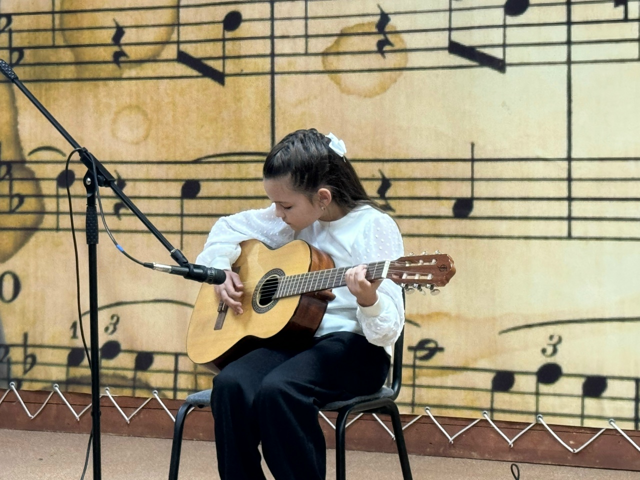 Особенностью концерта стало разнообразие репертуара. Публика смогла оценить не только тонкость акустического звучания, но и яркий, динамичный номер в исполнении одной из учениц старших классов, которая представила композицию на электрогитаре.