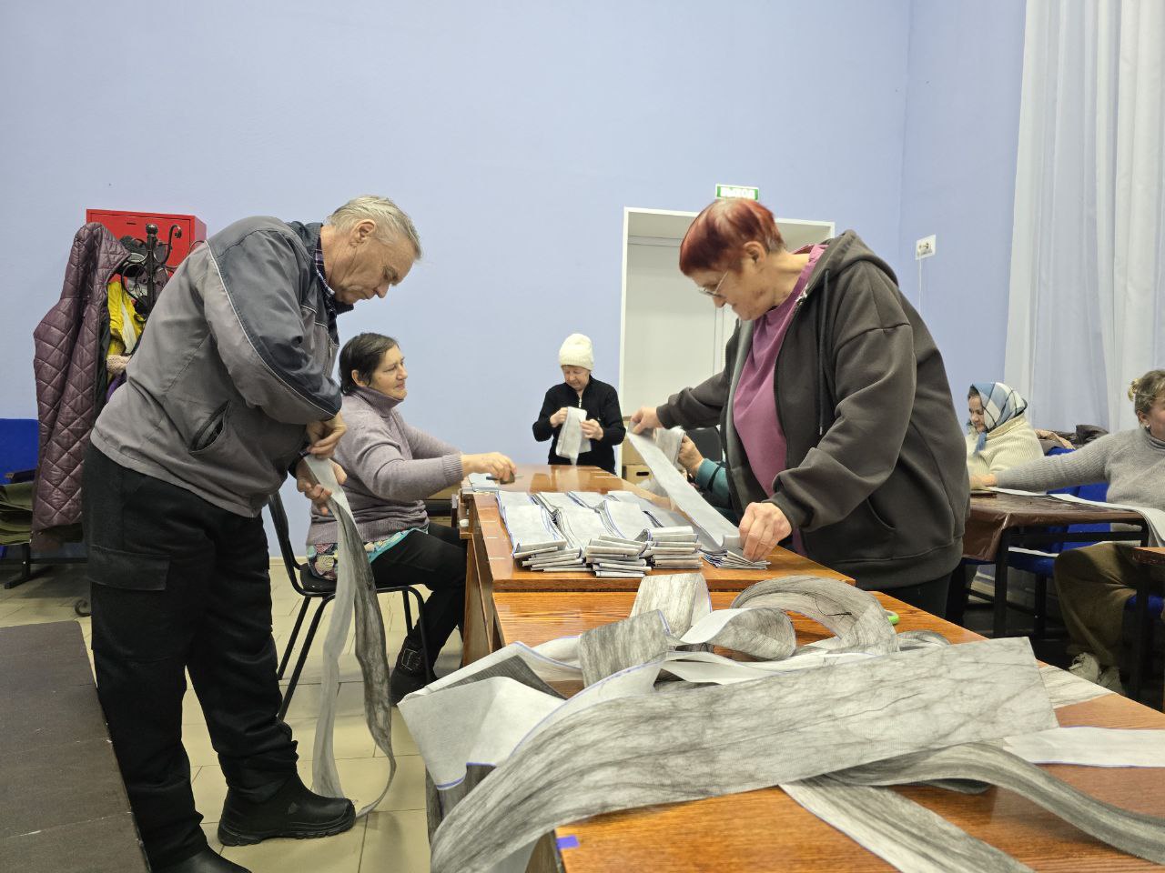 В Горьковском работает подготовительный «цех»: тут нарезают ленты для теплинского и нарышкинского пунктов плетения сетей. Здесь жадно смотрят на рулоны спанбонда, полотно которого размечают полосками и режут на ленты. Очень рады, когда кто-то приносит в дар очередную катушку – снова будет помощь ребятам. Маскировочные сети фронтовики разбирают, как горячие пирожки. Иногда на них встают в очередь или делают под конкретный заказ. Без сети солдаты на позиции точно голые. Поэтому руки матерей каждый день спешат укрыть ребят, как младенцев в колыбели.
