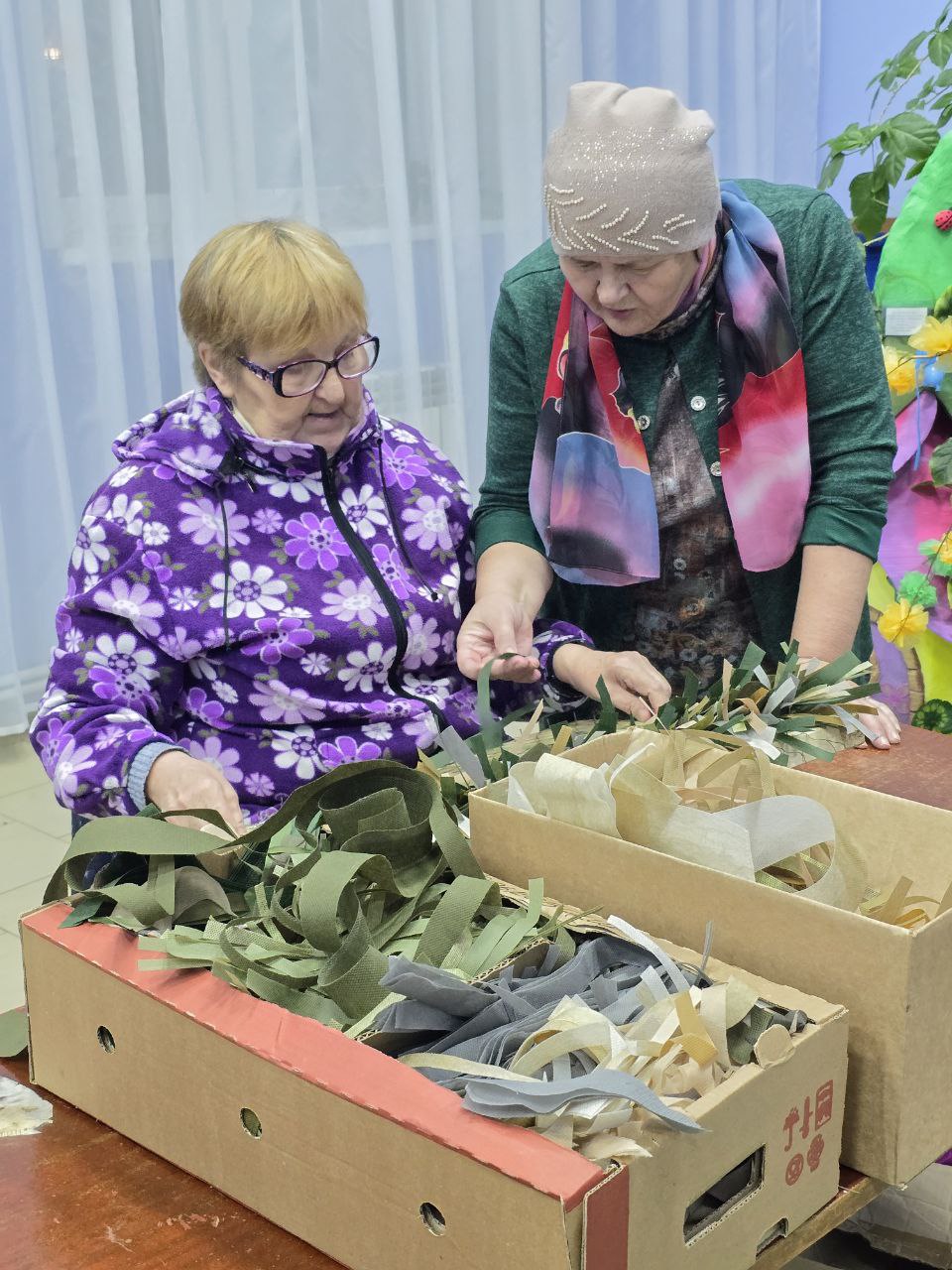 Пока все склонились над полотном ткани, к каждой то и дело подходит Антонина Георгиевна Горшкова. Принимает ленты и укладывает их в коробки. Ей уже за 80, но не присаживается женщина ни на минуту. Она фронтовикам уже даже не мама – скорее бабушка. А в голове постоянные мысли: что я еще для ребят сделать могу?
