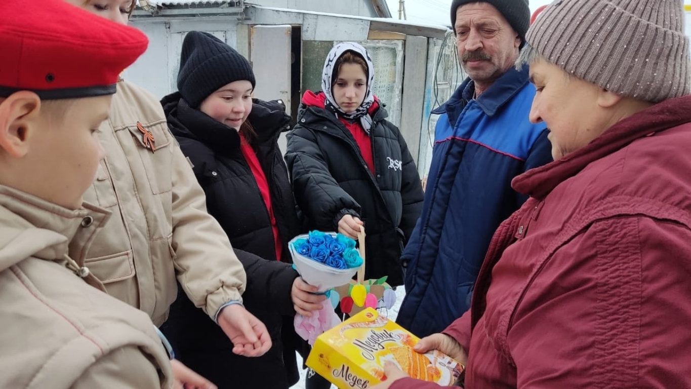 Ребята выразили семье слова поддержки и вручили им сувениры, сделанные своими руками.