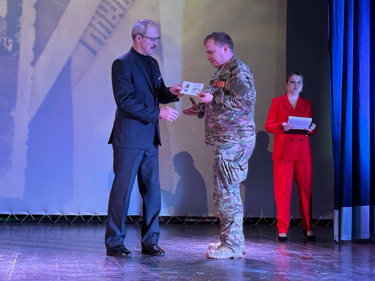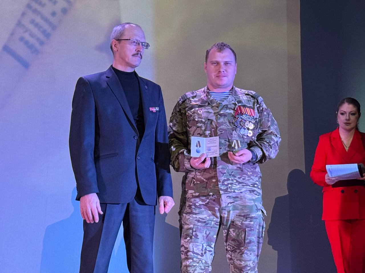 Руководитель районного отделения ветеранской организации «Боевое Братство» Виктор Моисеев поздравил собравшихся в зале районного дома культуры с памятной датой. Но главная его миссия заключалась в другом – передать награду нынешнему защитнику нашей страны. Медаль «Ветеран боевых действий» была вручена Александру Тараканову.