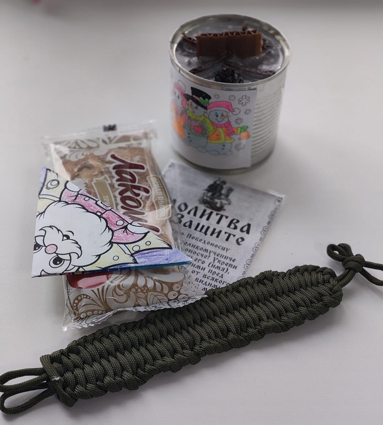 В посылки были собраны окопные свечи, браслеты выживания, сладости, тёплые вещи и письма с поздравлениями и пожеланиями.