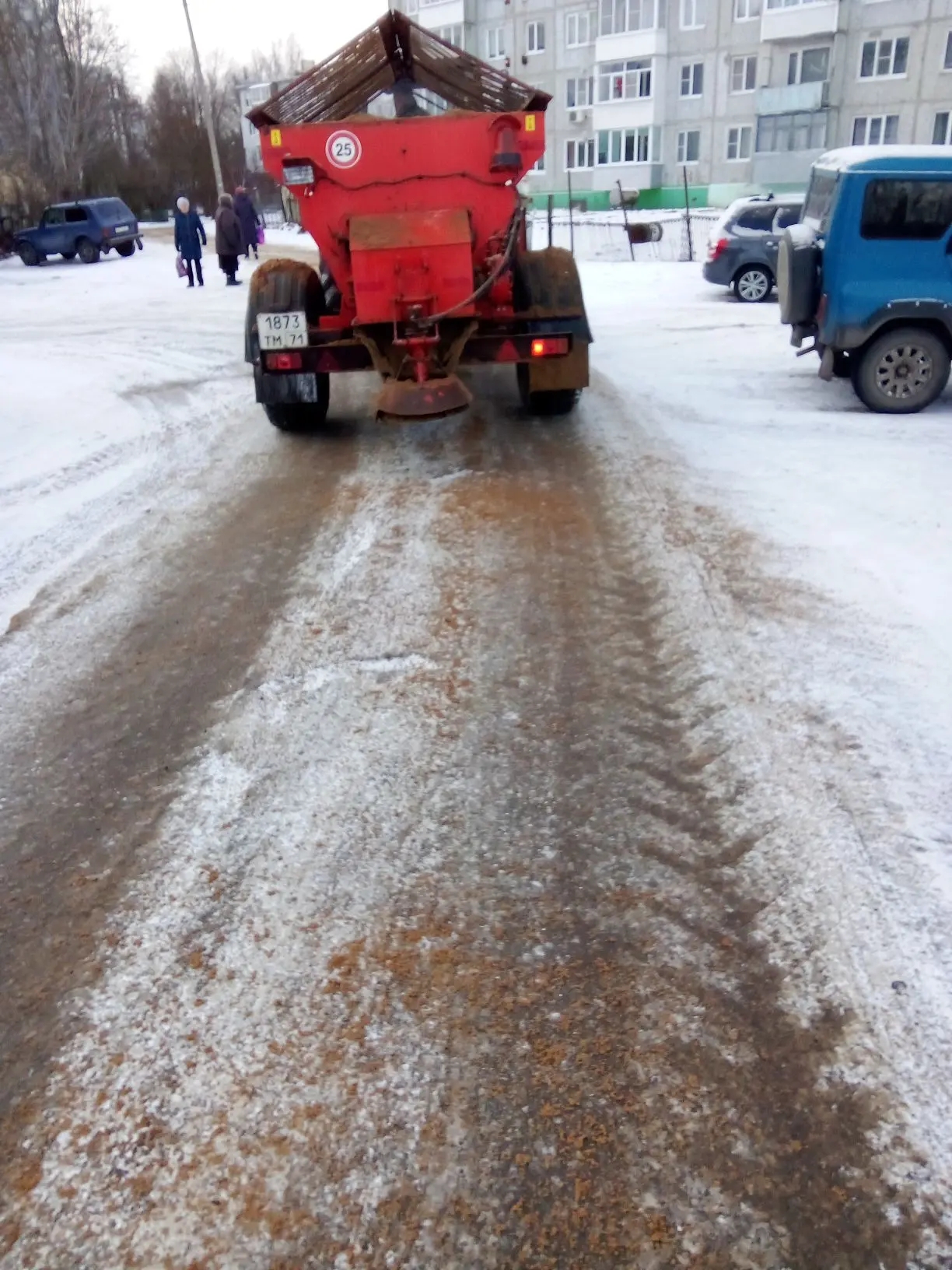 Проводится обработка пескосоляной смесью муниципальных дорог и тротуаров. Основная задача коммунальных служб и управляющих компаний в это время - обеспечить безопасное передвижение автотранспорта и пешеходов.