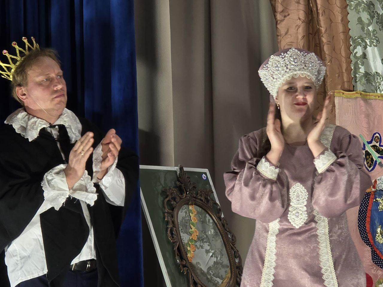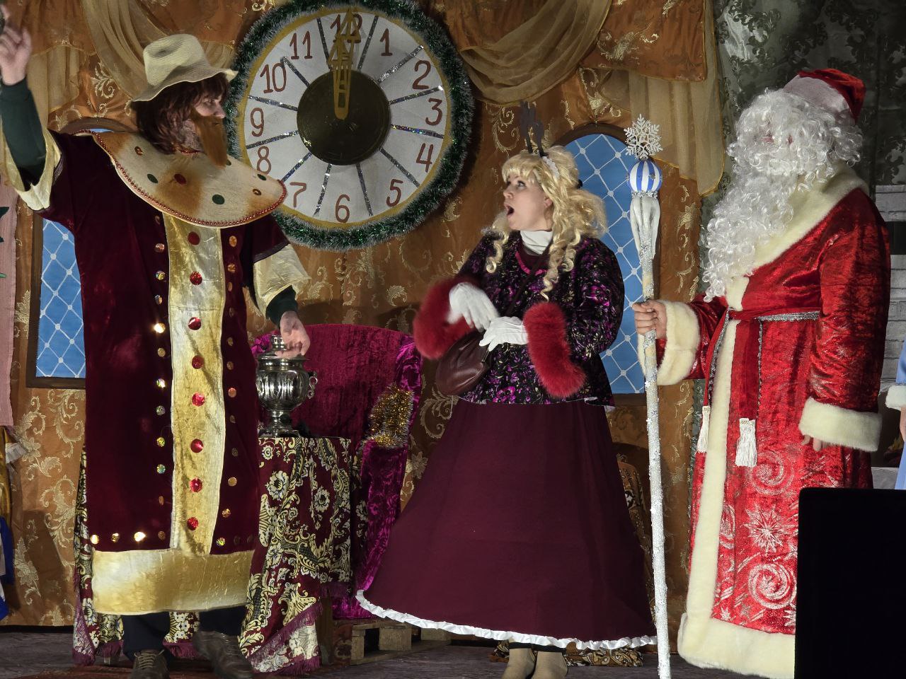 Оригинальные декорации, запоминающиеся образы, непревзойденная актерская игра. А ведь роли в спектакле исполняют вовсе не профессиональные актеры, а наши с вами земляки! В главных ролях на сцену вышли Михаил Демин, Алла Земскова, Максим и Светлана Назаренко, Людмила Евдокимова. Примечательно, что участие в комедии актеры принимали целыми семьями. Так, на сцену вместе с родителями вышли Матвей и София Назаренко, Екатерина Семина, Артем и Антон Земсковы. Роль Снегурочки, а также сольные новогодние композиции исполнила Дарья Голованова.