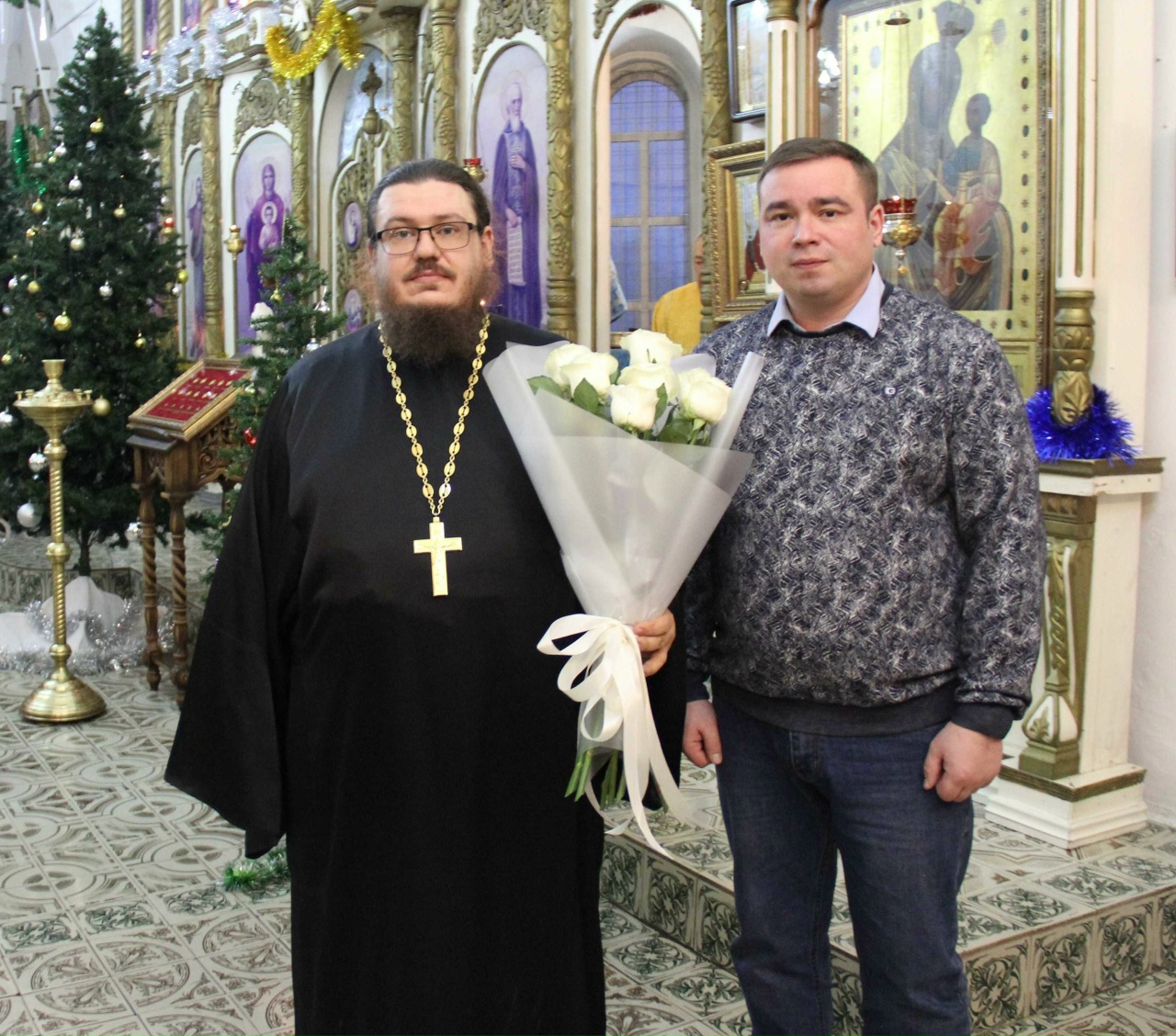 Глава администрации района Роман Попов поздравил настоятеля Свято-Иверского храма отца Иоанна с днем рождения и Рождественским сочельником.